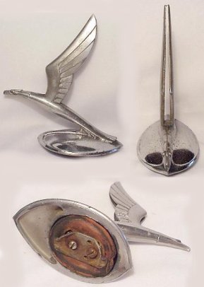 Eagle, produced in 1933. Made from die-cast zinc & chrome plated. Designed by William Schnell of Detroit and J.R. Morgan Birmingham Michigan. These mascots were only used for one year.
