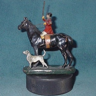 The detail on this piece is beautiful. It's cold enamel painted and shows a typical British hunting scene, complete with horse, rider and foxhound.