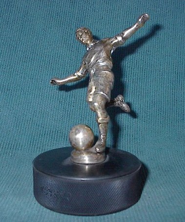 Fine detail and patina on this Soccer player who's taking a free kick.