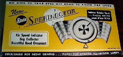 Speed-ector, produced in the 1940's. This deflector had an unusual touch in the fact that it also incorporated an air-speed indicator! Made & supplied by the SINKO MFG & TOOL CO, 7310 W. Wilson Ave, Chicago 31. 111.