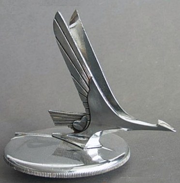 Goose, produced by the Stant Machine Co. from 1931 to 1934. Zinc die-cast and chrome plated. Marked